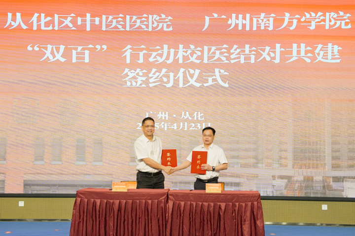 4月23日,“双百行动”校医结对共建签约揭牌活动暨南方中医药名家讲座在广州南方学院举行。