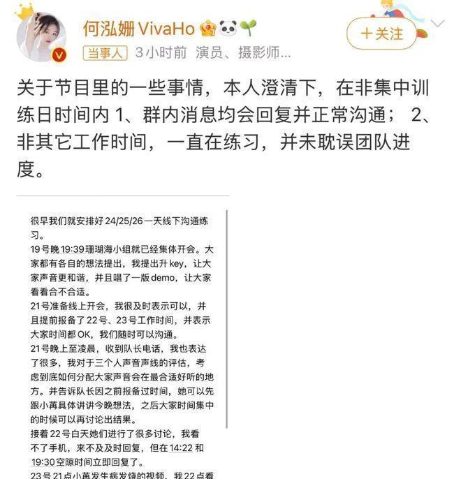 何泓姗表示在参加浪姐期间从未耽误过团队进度。